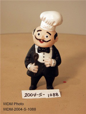 This plump little chef is a coin bank. He was a mascot for Magic Chef Inc., which was a gas stove company. He is holding one of smallest spoon in the WDM collection measuring in at roughly three centimetres. WDM-2004-S-1088