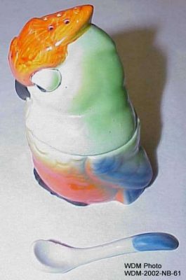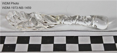 Ellen & Warren Rotzien from Rose Valley area owned this adorable glass saltcellar in the shape of a parrot. The spoon was used to add more salt into the cellar which meant removing the parrot’s head in order to refill the salt. WDM-2000-NB-61.3.a-c