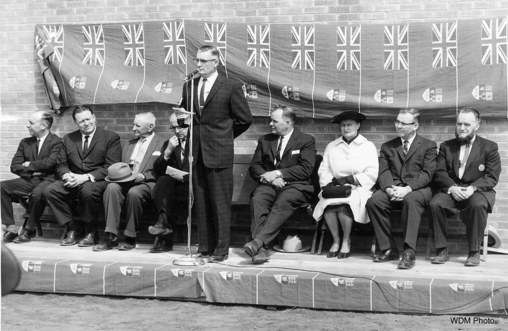 Upon arriving at the Museum, the opening ceremonies officially began. The official event featured several speakers, including North Battleford Mayor Roy Dean and Saskatchewan Minister of Natural Resources Eiling Kramer. Saskatchewan Minister of Agriculture I. C. Nollet cut the ribbon to officially open the museum. Joe Phelps, one of the founders of the WDM, was honoured at the opening with a plaque, which was unveiled by his wife, Eva. Joe Phelps himself was unable to attend the opening.