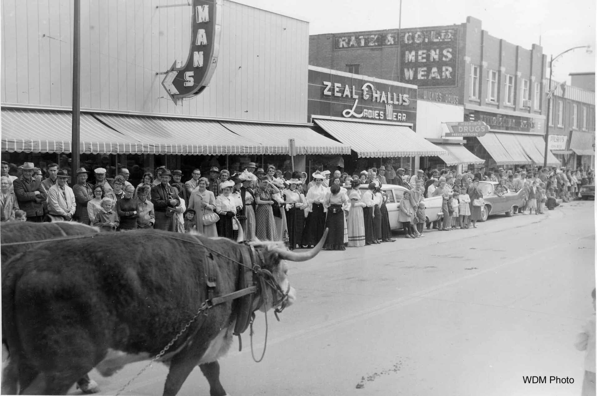 A banquet at the Beaver Hotel at noon launched the opening celebrations. At the banquet, 12 visiting guests were presented with certificates of honourary citizenship. This was followed by a parade which travelled one mile from the CNR station to the Museum, led by the North Battleford City Kinsmen Band. The parade featured antique cars, covered wagons and buggies. Some businesses along the parade route had their employees dress in period costume or decorated their stores to look like old trading posts.