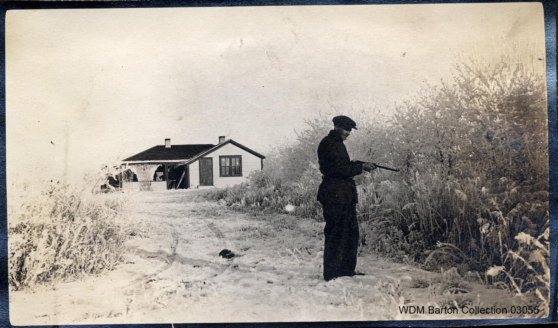 Hunting was a great way to restock food stores throughout winter. This photo shows someone hunting behind a house in the winter of 1918.