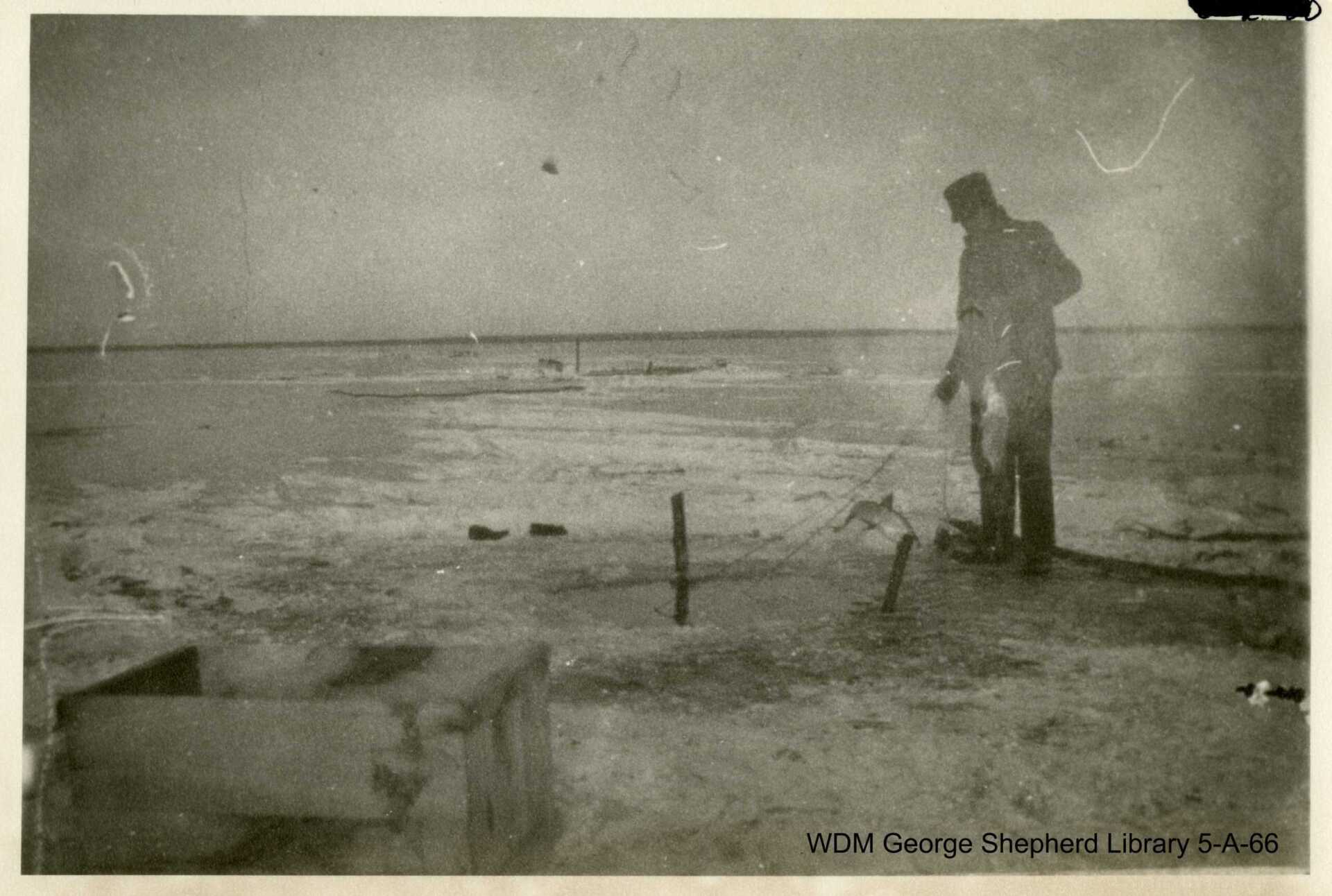 Ice fishing with nets in Meota Lake. No date.