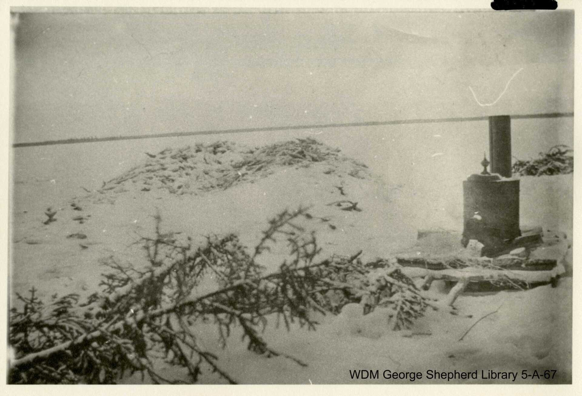Pile of frozen fish on Meota Lake. No date.