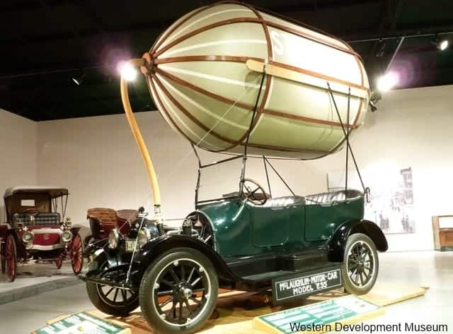 Heads turned on an August day in 1918 as a car with a giant gas bag suspended overhead made its way from the University of Saskatchewan to downtown Saskatoon. Two professors were out for a test drive in a 1918 McLaughlin touring car powered by straw gas. The WDM has re-created the professors’ experimental car for this exhibit.