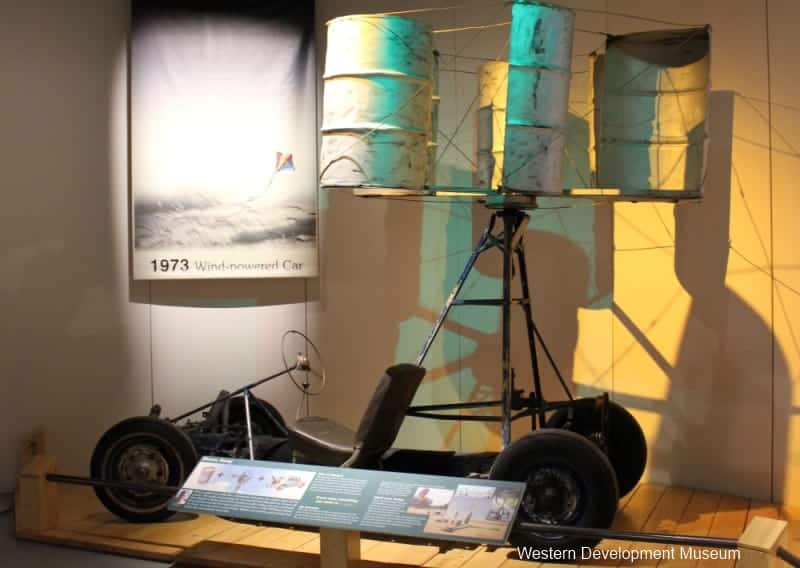 In the 1970s, using a Volkswagen chassis, windmill parts and wind scoops made from oil drums, one clever Saskatchewan farm boy cobbled together a vehicle powered by the wind. A stiff breeze propelled it about as fast as a person could walk.
